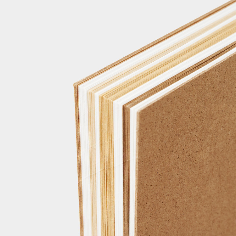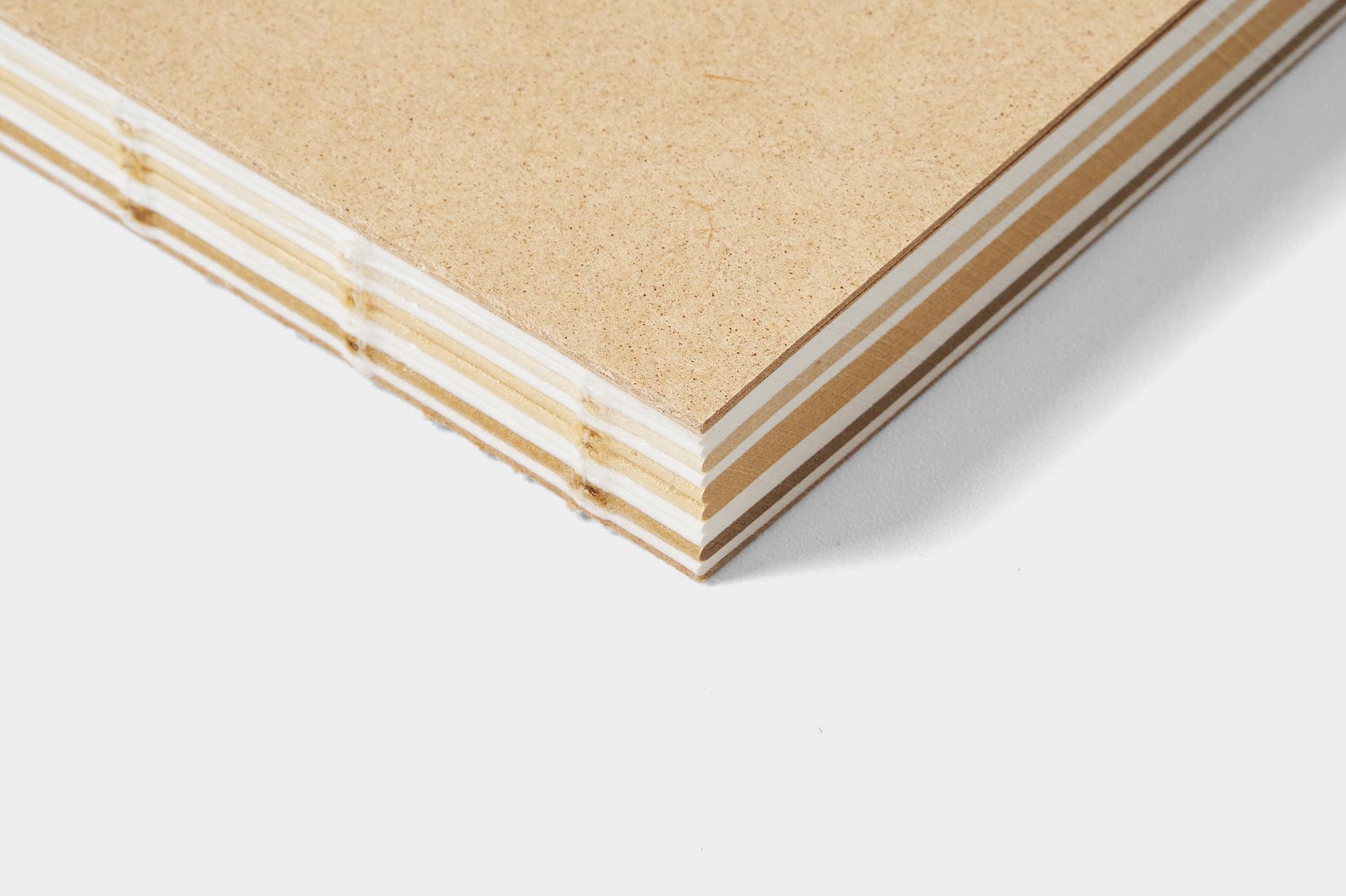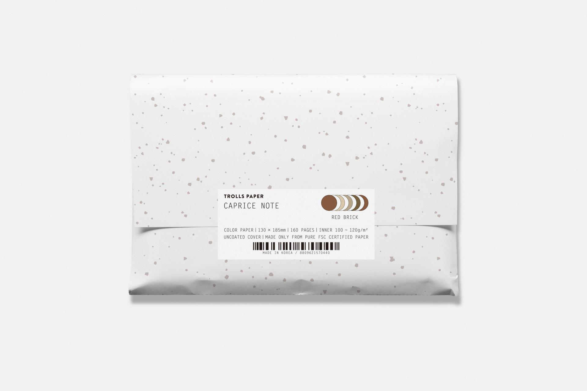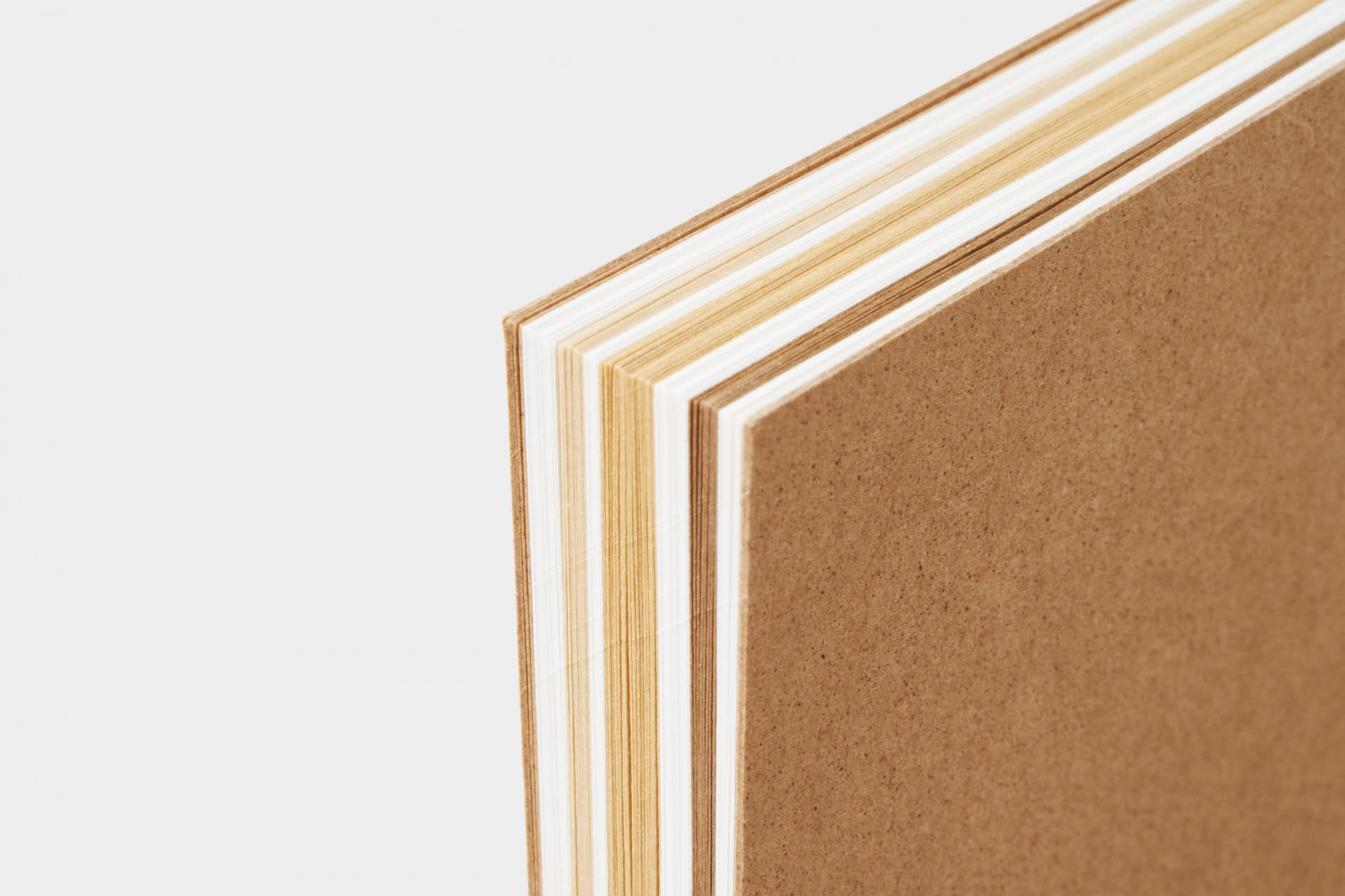 카프리스노트 베이지의 표지는 코코아 껍질 분말로 토양과 과일 특유의 자연스러운 색감을 입은 종이로 제작되었습니다.