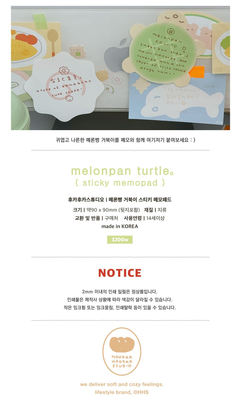 메론빵 거북이 스티키 메모패드