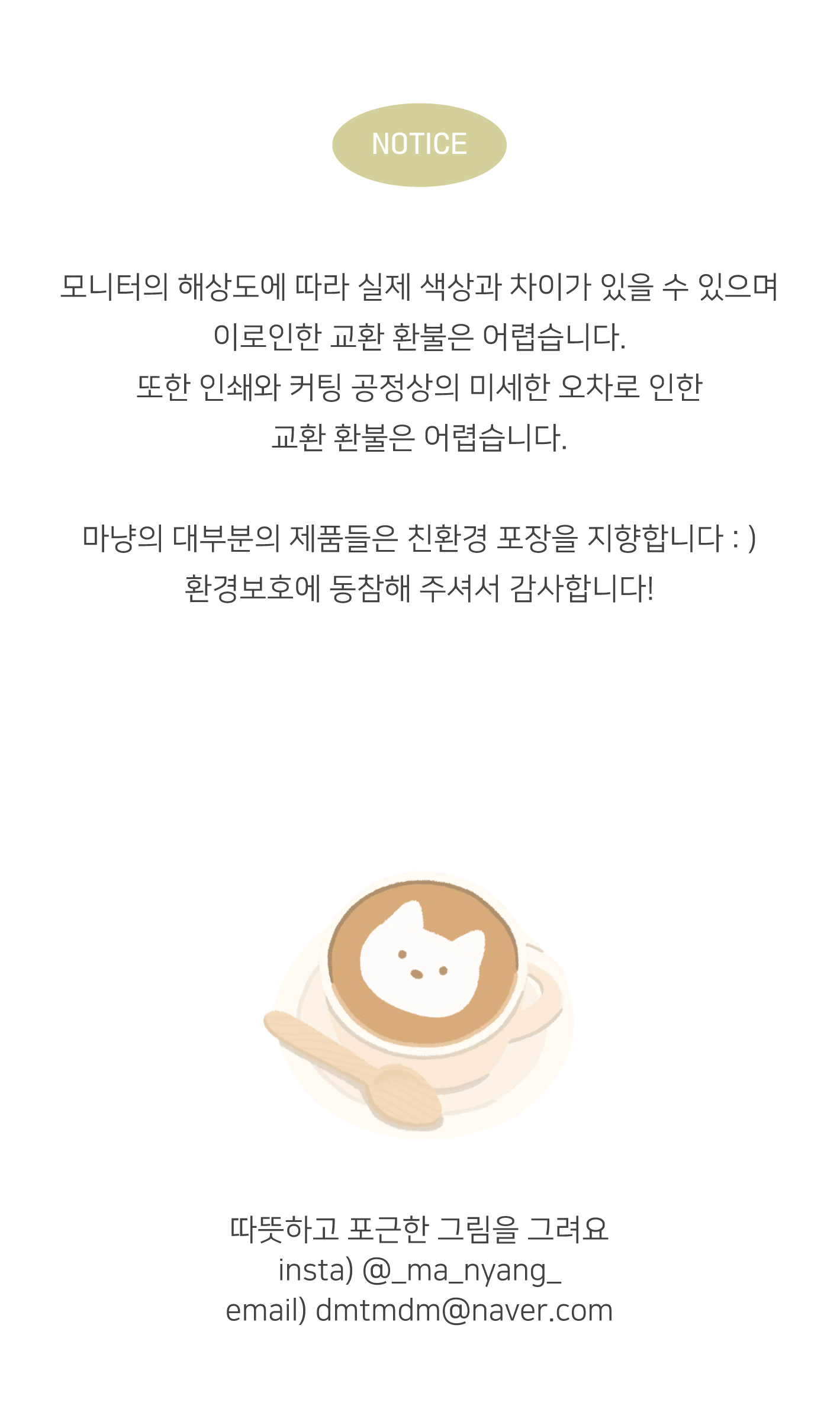 마냥의 대부분의 제품들은 친환경 포장을 지향합니다.