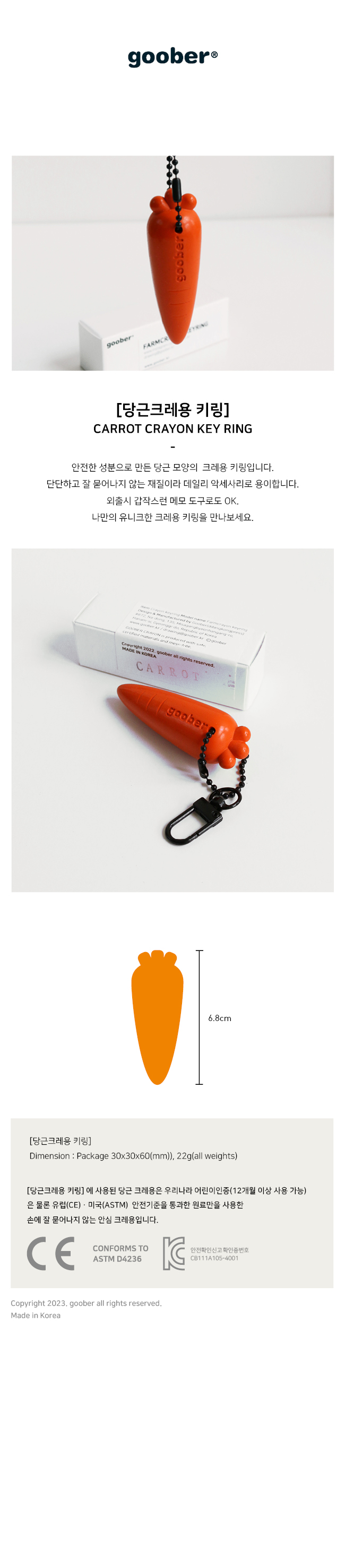 안전한 성분으로 만든 당근모양의 크레용 키링입니다
