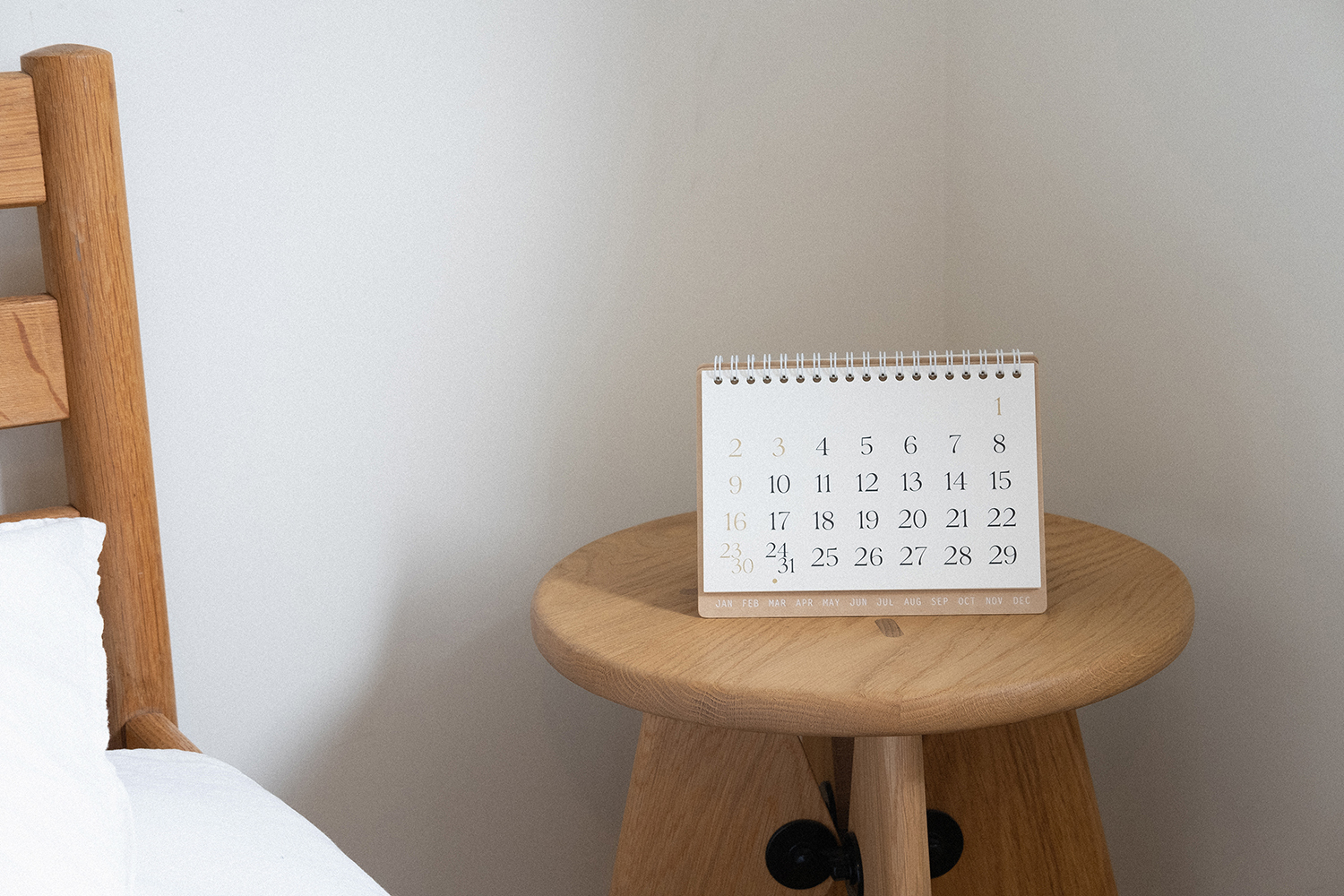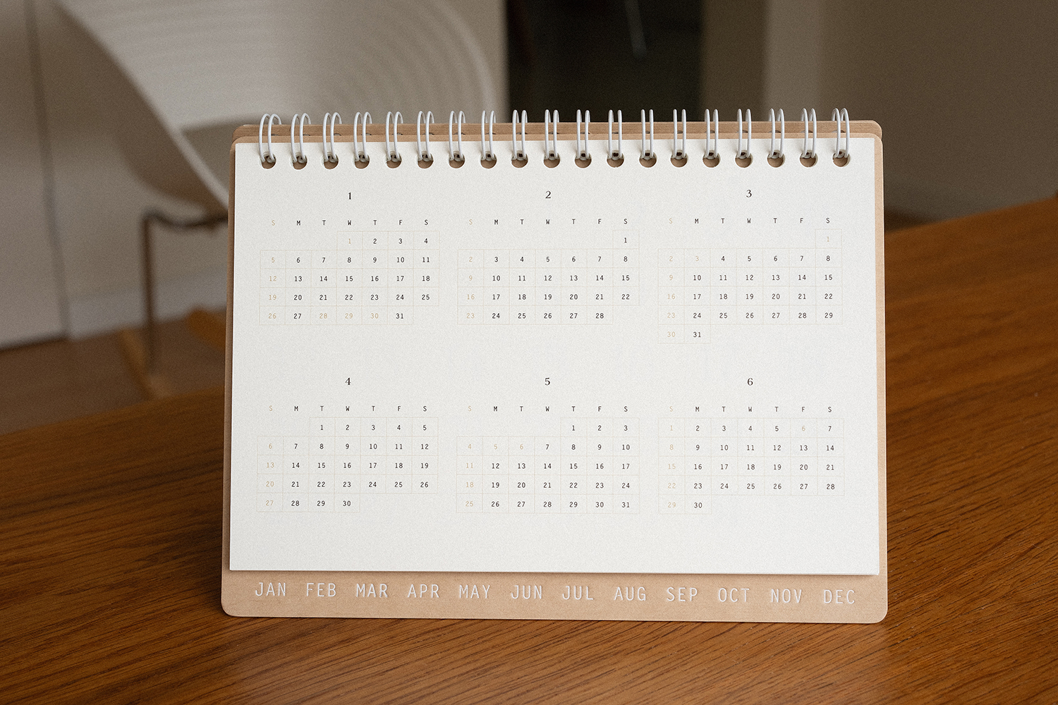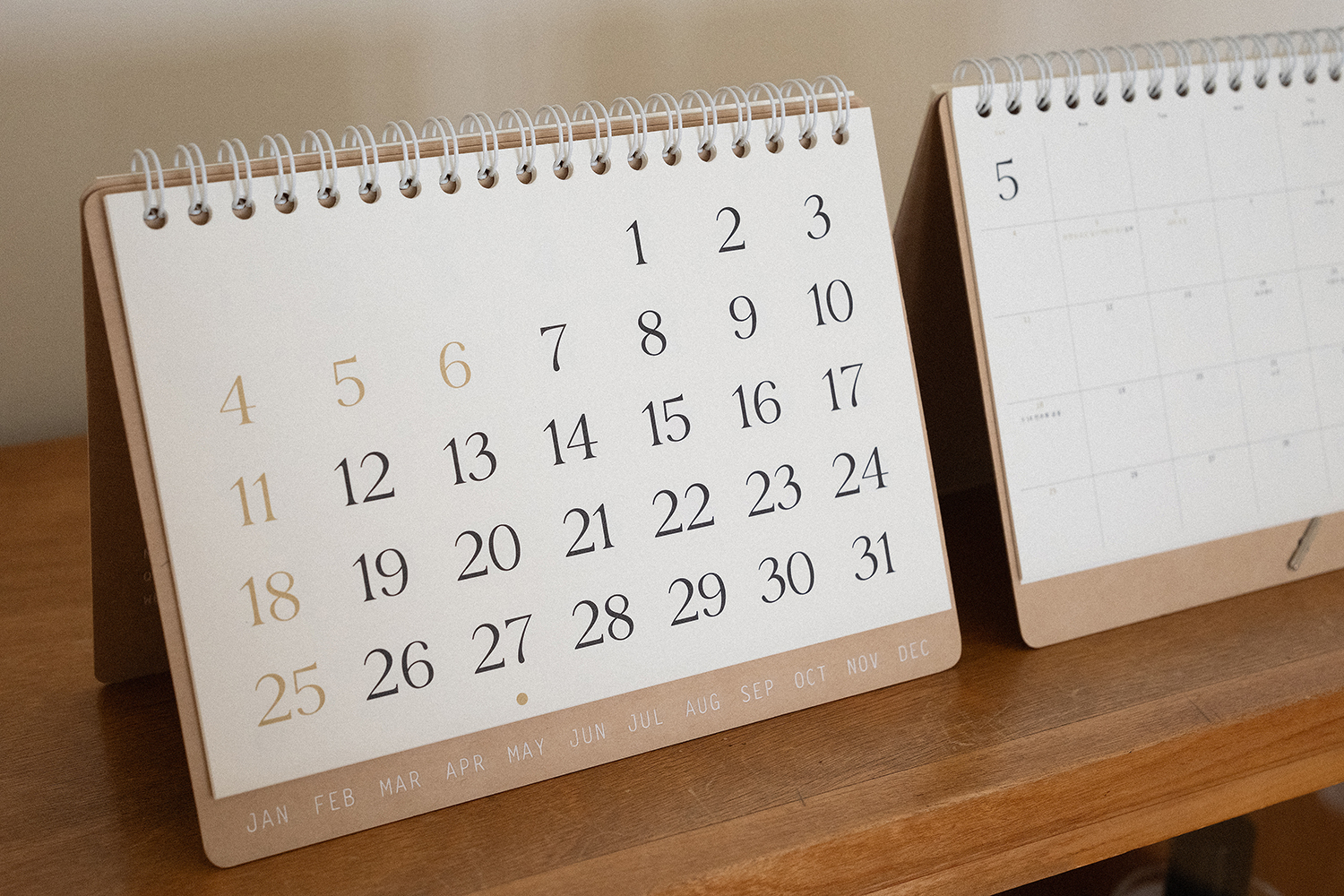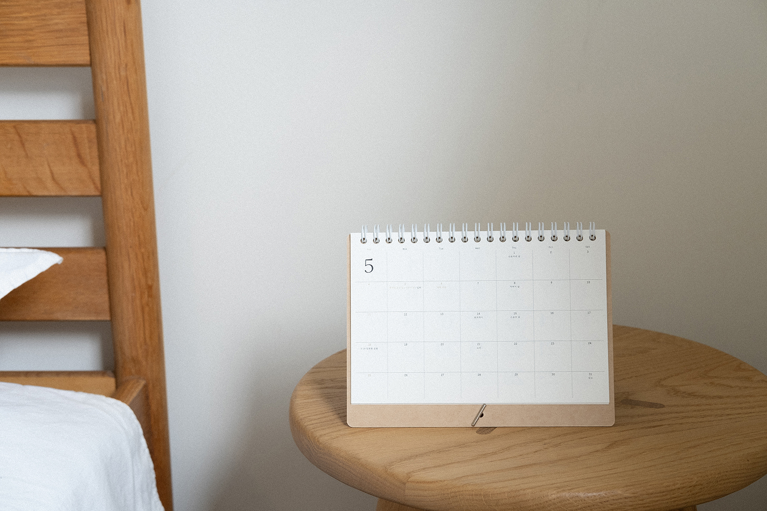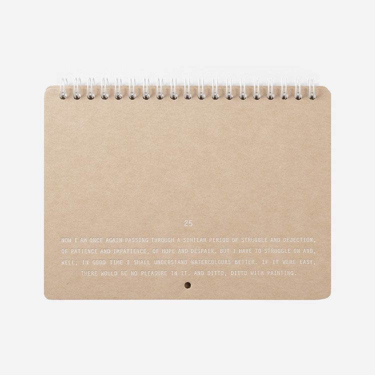 플랫한 형태로 기록할 수 있어 편리합니다. 2025 캘린더의 표지는 표백되지 않은 자연스러운 브라운 색감의 내추럴 보드입니다.