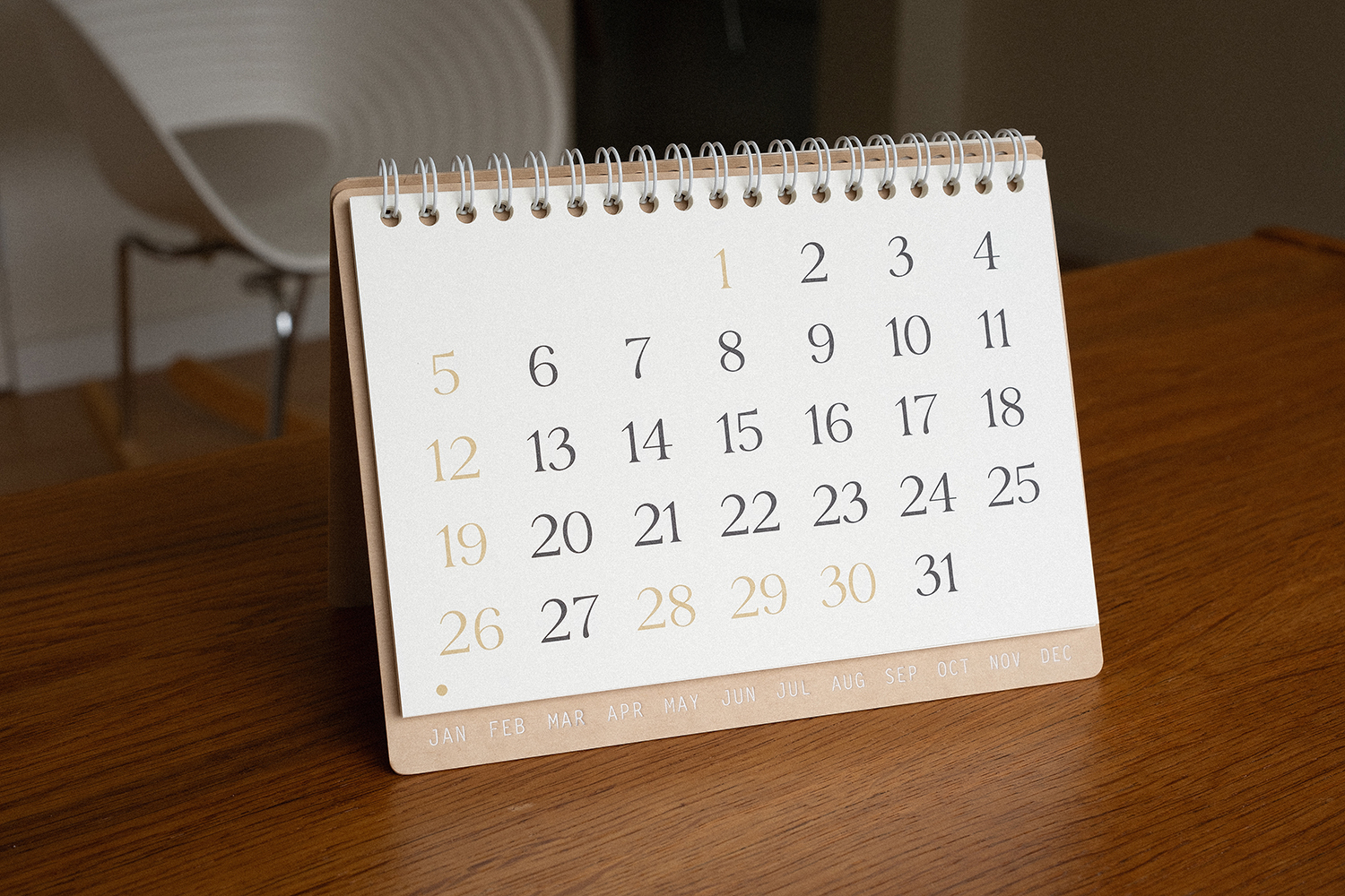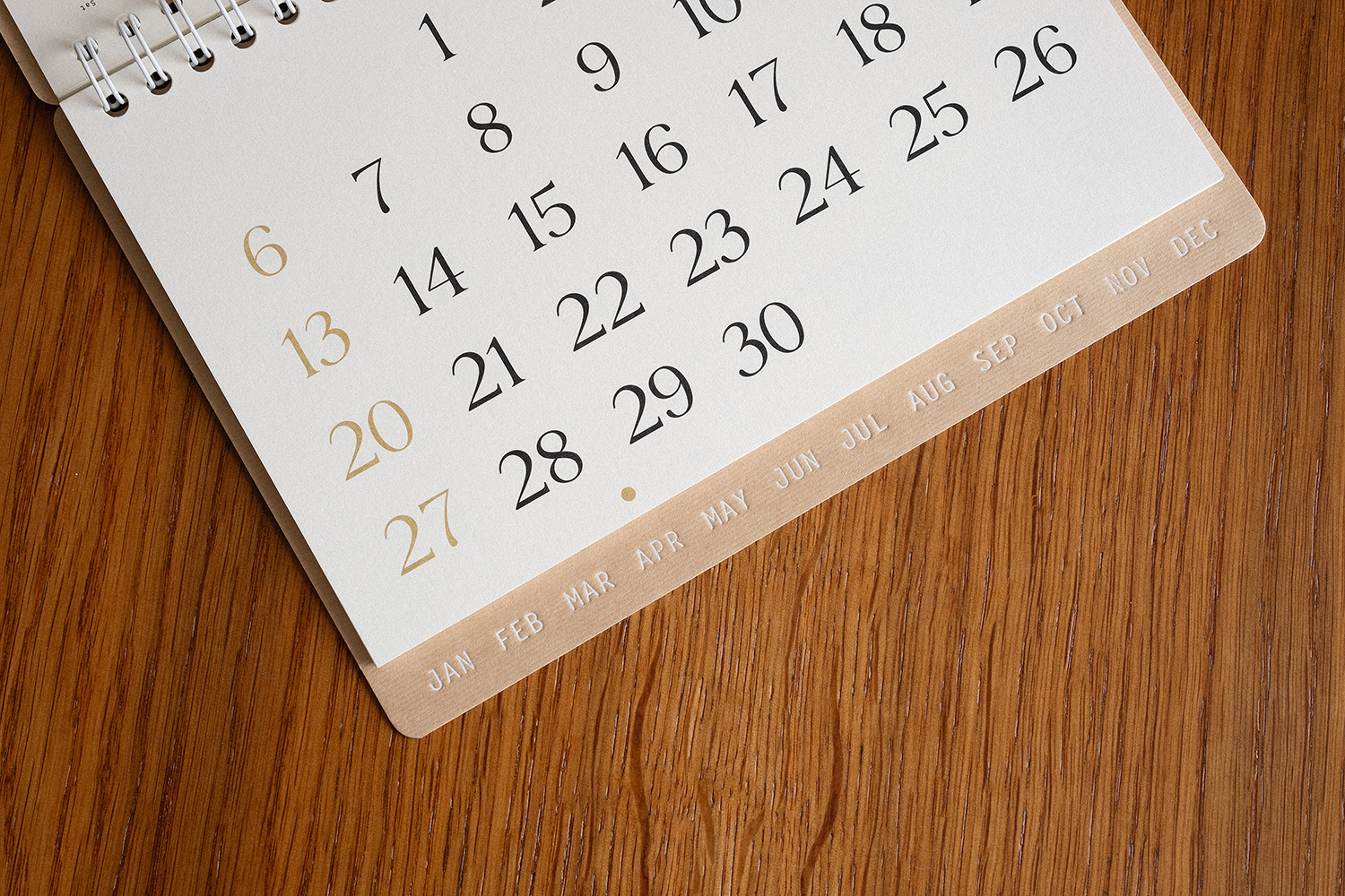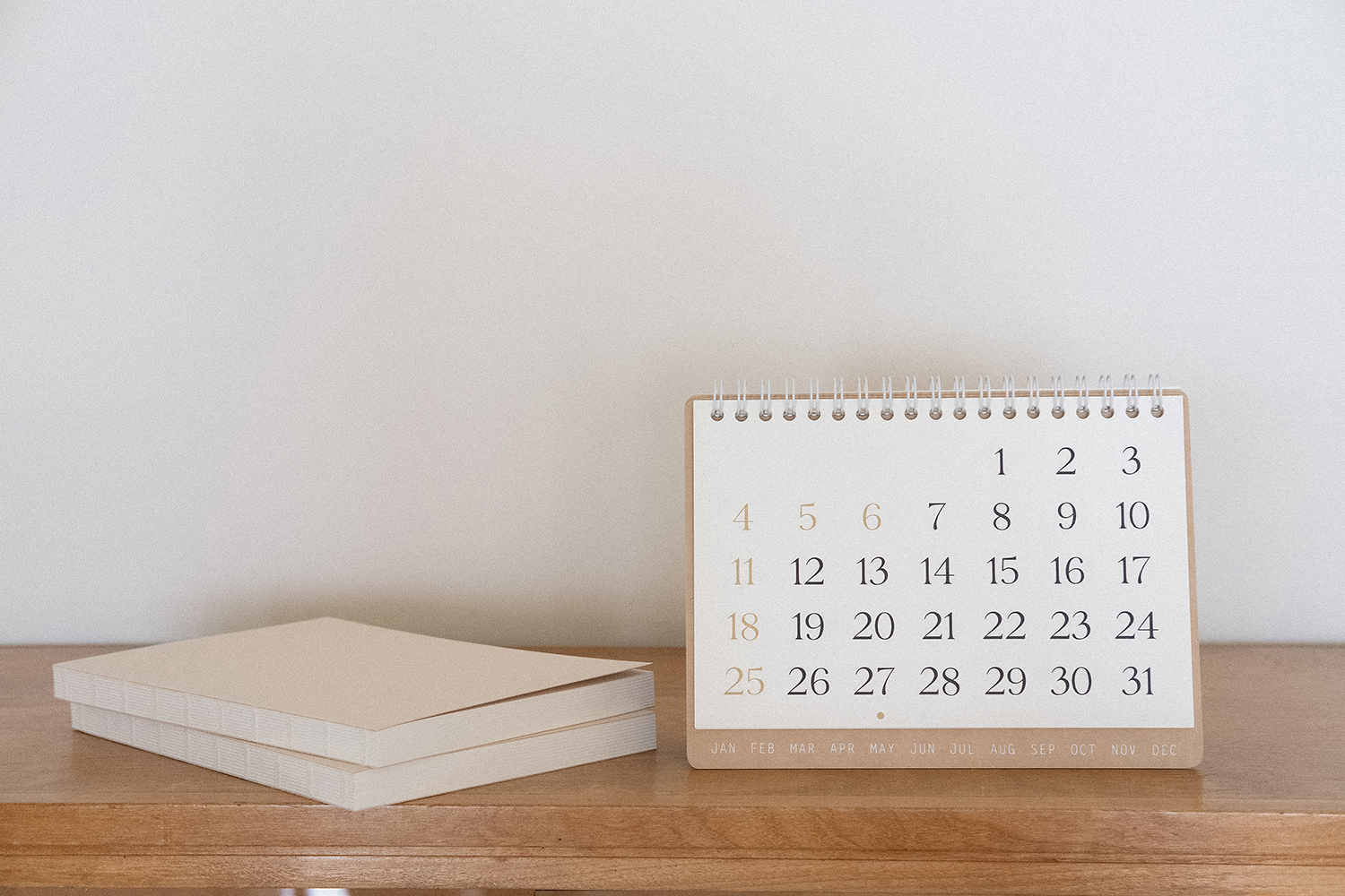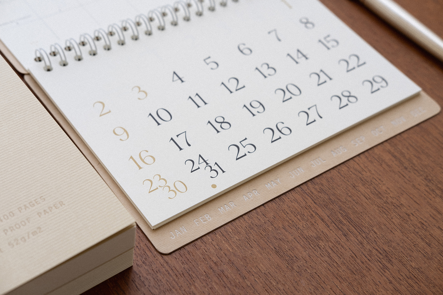 플랫한 형태로 기록할 수 있어 편리합니다. 2025 캘린더의 표지는 표백되지 않은 자연스러운 브라운 색감의 내추럴 보드입니다.
