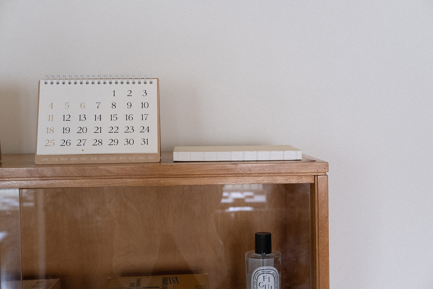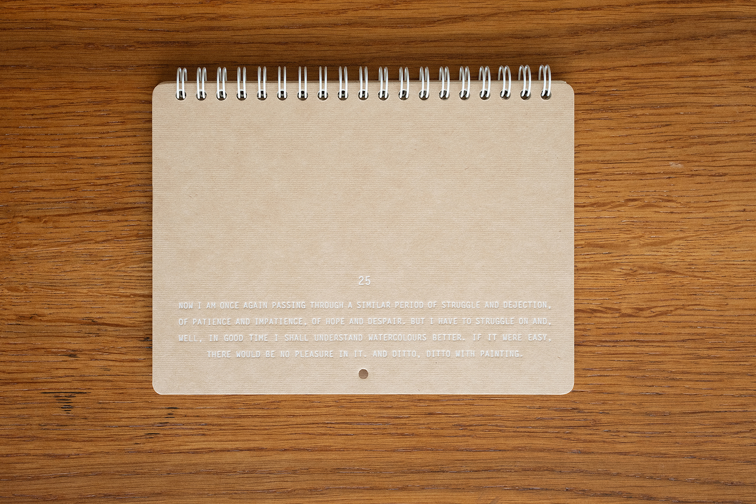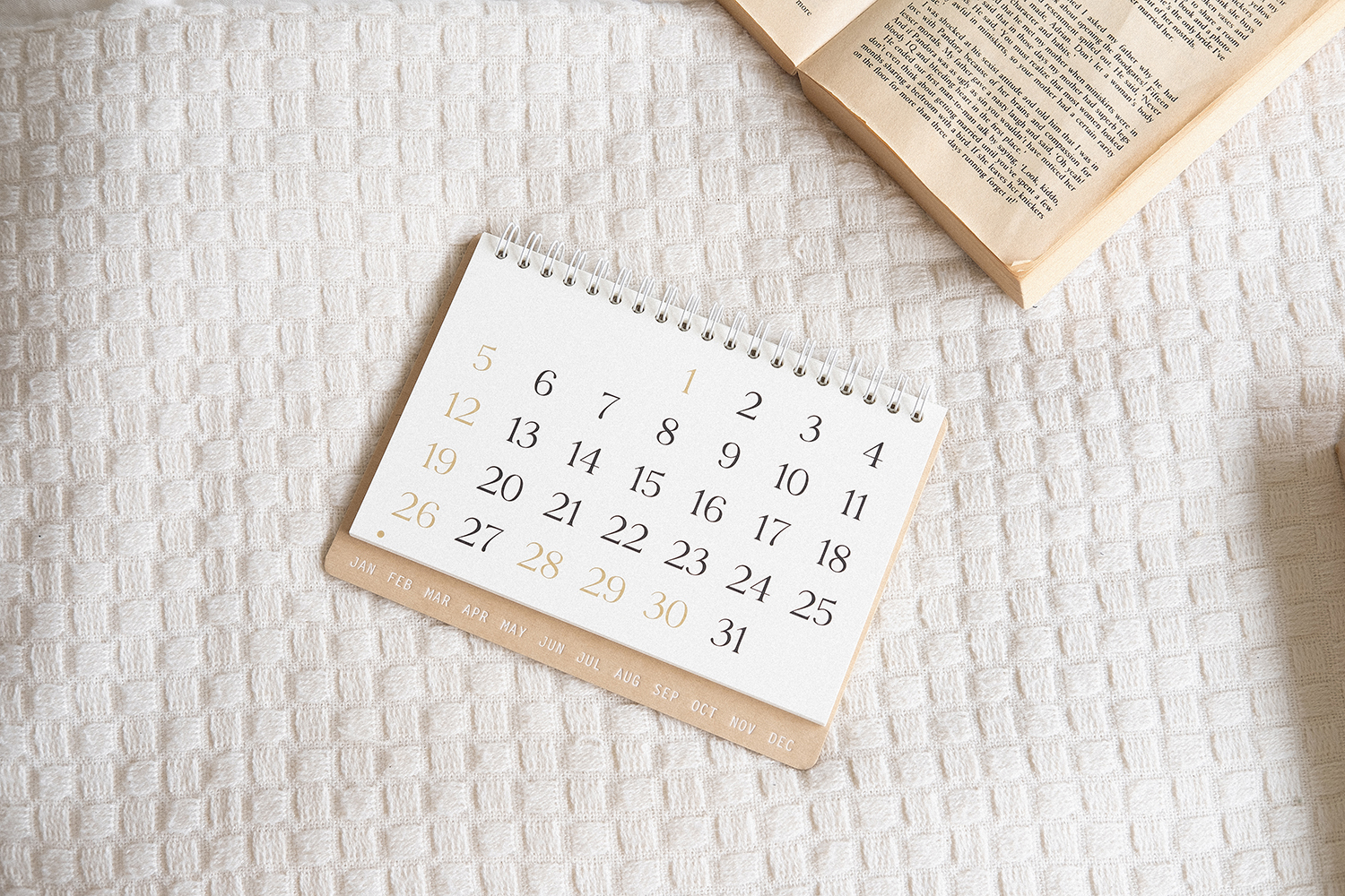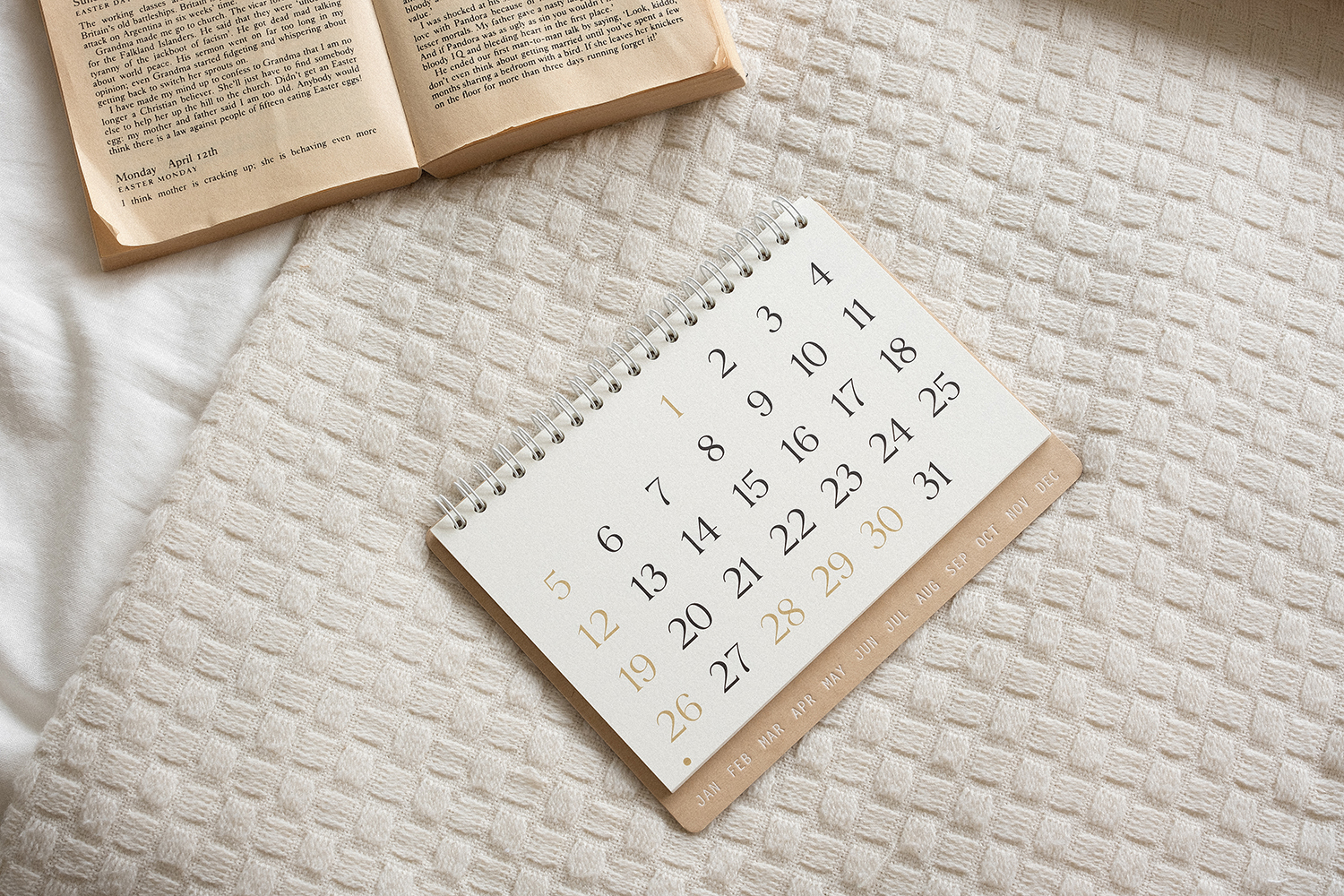 플랫한 형태로 기록할 수 있어 편리합니다. 2025 캘린더의 표지는 표백되지 않은 자연스러운 브라운 색감의 내추럴 보드입니다.