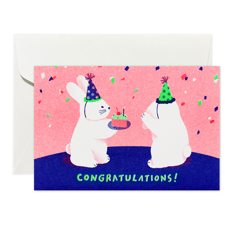 토끼들이 귀여운 모자를 쓰고 축하해주고 있어요