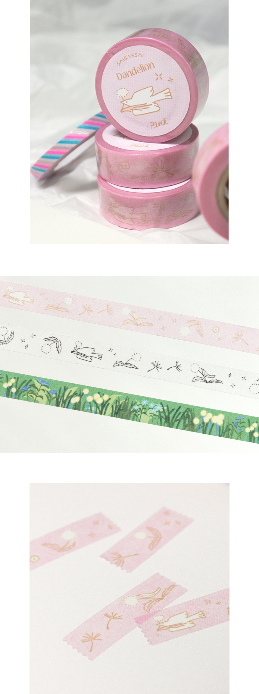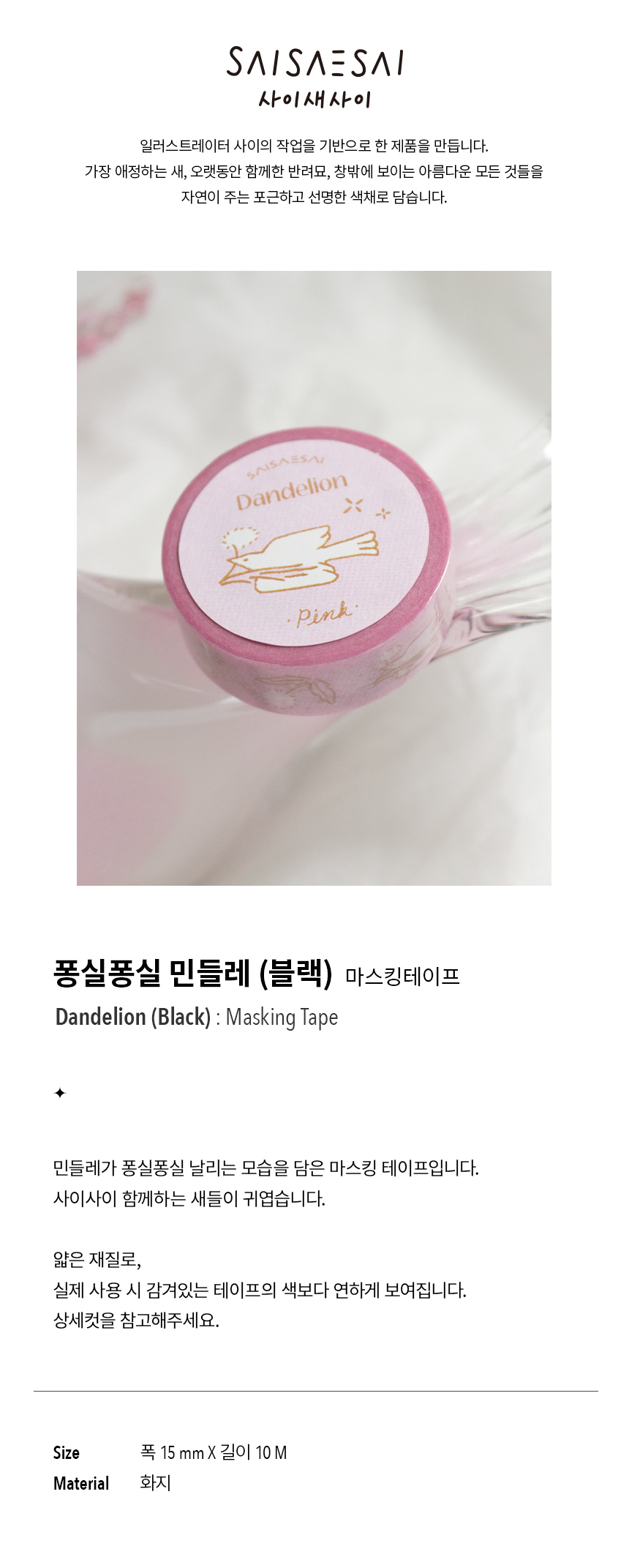 민들레가 퐁실퐁실 날리는 모습을 담은 마스킹 테이프입니다.