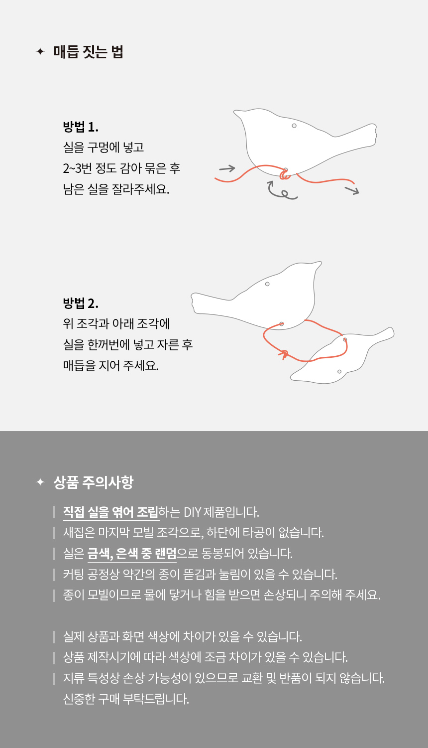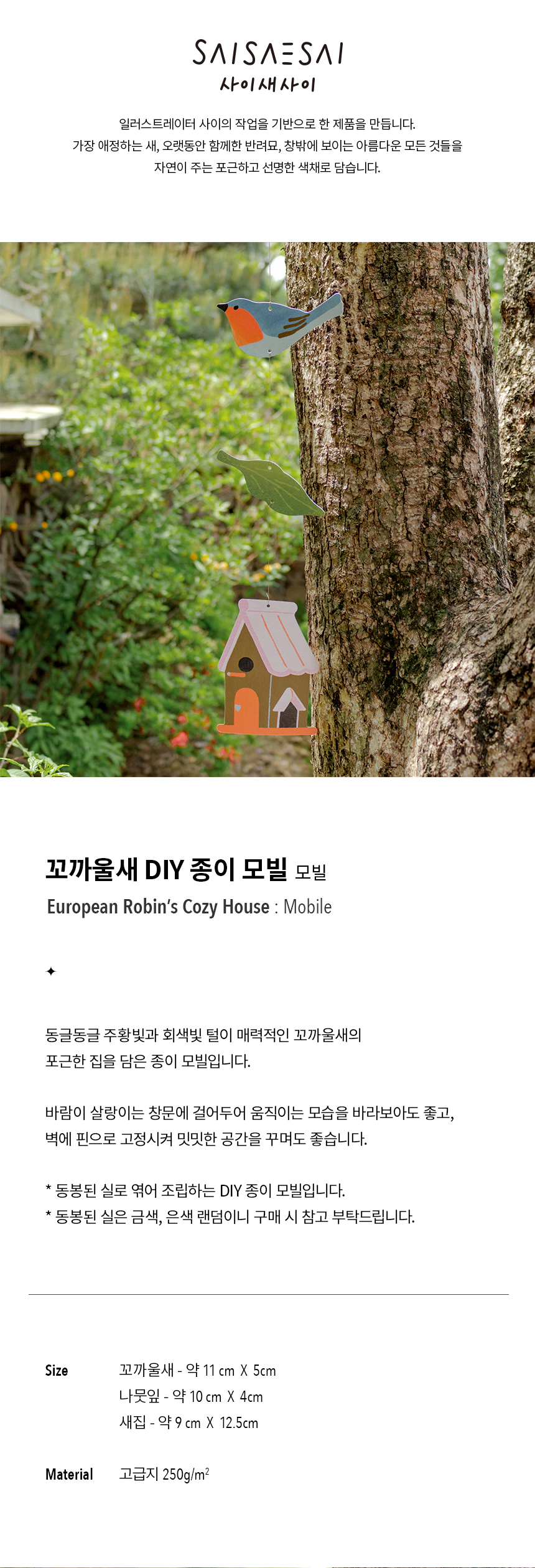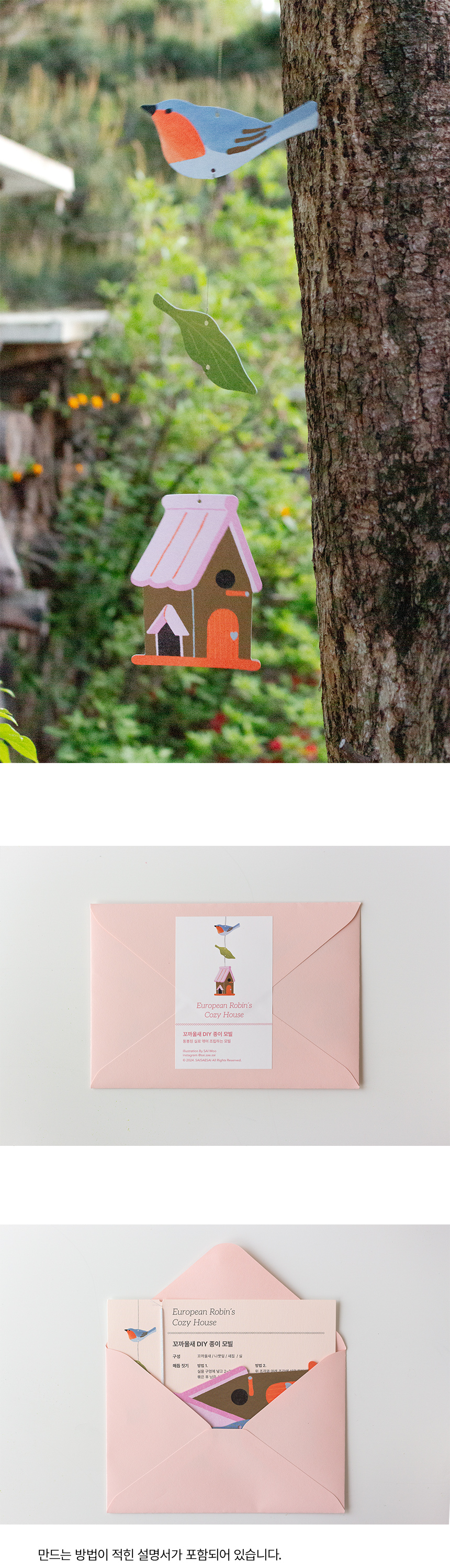 *동봉된 실로 엮어 직접 조립하는 DIY 종이 모빌입니다