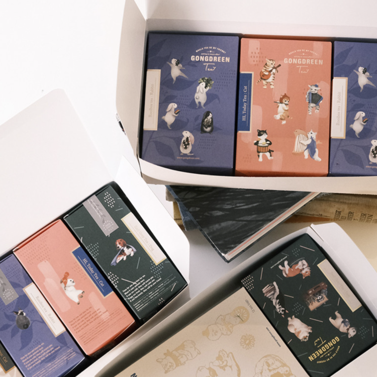 공드린 티 3개-4개가 들어가는 박스와 쇼핑백입니다.