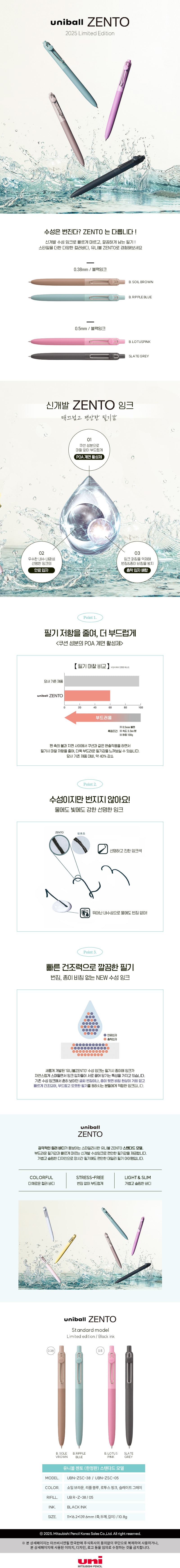 유니볼 젠토 수성볼펜 (0.38mm/ 0.5mm)
