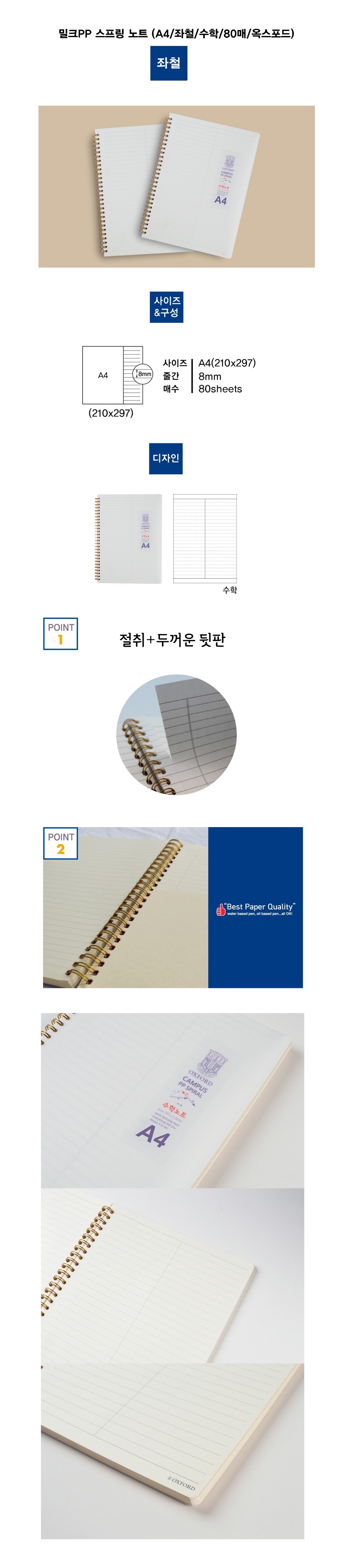 옥스포드 좌철스프링 A4 2분할 수학노트